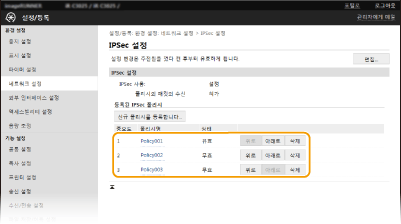 [등록된 IPSec 폴리시] 아래 나열되는 정책의 순서를 조정합니다.