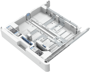 2가지 유형의 용지 카세트를 기기에 설치할 수 있습니다. 넣을 수 있는 설치 위치 및 용지 크기는 용지 카세트의 유형에 따라 다릅니다.