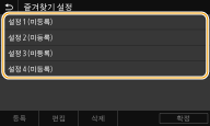 복사, 팩스 및 스캔 기능에 대한 동일한 설정을 빠르게 불러올 수 있도록 이 기능들을 즐겨찾기 설정에 등록할 수 있습니다. 등록된 설정 조합을 단축 버튼으로 홈에 추가할 수 있습니다.