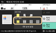 PDF 파일을 인쇄할 때 9 또는 16페이지의 이미지를 1페이지에 결합하려면 <PDF 상세 설정>  <N on 1>을 선택합니다. |