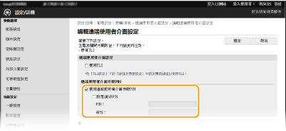 勾選 [使用遠端使用者介面存取PIN] 核取方塊,並設定 PIN。