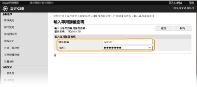 2 | 輸入金鑰的名稱和密碼。 [鍵值名稱] 輸入代表要註冊之金鑰名稱的英數字元。 [密碼] 輸入英數字元作為要註冊的檔案之私密鍵値組密碼。 |