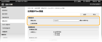 3 | 指定 [有效時長] 和 [認證]/[加密]/[DH群組] 設定。 |
