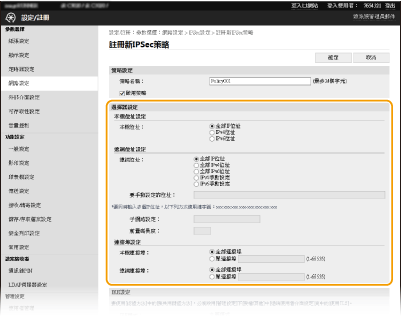 [IPv4手動設定] | 選擇指定一個套用 IPSec 的 IPv4 位址或 IPv4 位址範圍。在 [要手動設定的位址] 文字框中輸入 IPv4 位址(或範圍)。 |