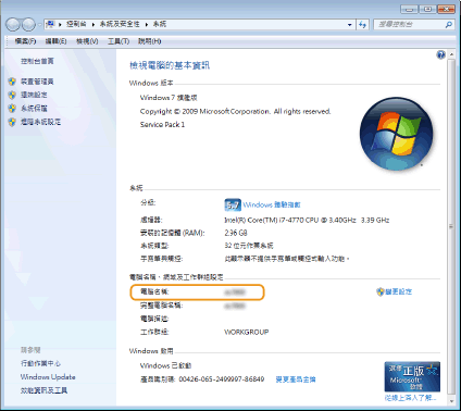 查看電腦名稱。