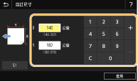 在紙匣或多用途紙盤的紙張尺寸選擇會面中選擇 <自訂尺寸> 時可以叫用在以上程序中註冊的紙張尺寸。