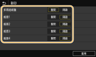 一定要將至少一個紙匣指定為 <開啟>。若將所有紙匣均指定為 <關閉>,則將無法結束設定程序。