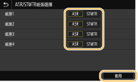 為每個紙匣選擇 <A5R> 或 <STMTR>,然後選擇 <套用>。