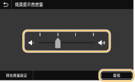 <輸入提示音> | 每次按下控制面板上的按鍵或顯示器上的按鈕時發出的確認聲音 | 選擇 <開啟>(發出提示音)或 <關閉>(不發出提示音)。 |
