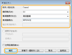 3 | 設定通訊模式和傳真號碼,然後按一下 [確定]。 ![]() |