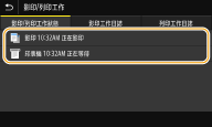 檢查列印狀態1 | 在 <影印/列印工作狀態> 標籤中選擇要查看哪一份文件的狀態。 ![]() 顯示所選文件的詳細資訊。 |