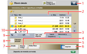 Permet eliminar els fitxers emmagatzemats al dispositiu de memòria. Podeu seleccionar i eliminar fins a 32 documents alhora.