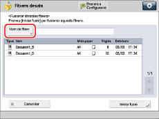 Si seleccioneu diversos fitxers i premeu [Canviar nom de fitxer], es canviarà el nom del fitxer seleccionat (ressaltat).