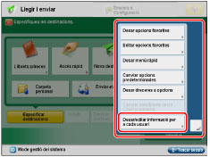 a la part superior dreta de la pantalla de funcions bàsiques de [Llegir i enviar], la pantalla de funcions bpasiques de [Fax], la pantalla d'enviament de [Fitxers desats] i la pantalla d'enviament de [Bústia de fax/I-fax]. |