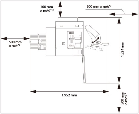 *3 Assegureu-vos de deixar com a mínim 500 mm d'espai per a les tasques de servei. A més, assegureu-vos de deixar com a mínim 1000 mm d'espai si instal·leu una de les opcions del sistema de lliurament/recollida que es mostren tot seguit com a conjunt complet de la unitat.
