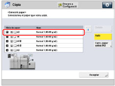 Per als originals de mida no estàndard, no se selecciona la mateixa mida de paper que amb la selecció automàtica. Especifiqueu manualment el paper al qual voleu copiar el document.