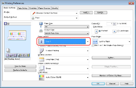 If you cannot select the options for [Page Layout], display the [Device Settings] tab, and then select [Auto] or [Enabled] from [Spooling at Host]. For instructions on how to display the [Device Settings] tab, see "Setting the Printer Options."