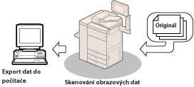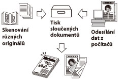 Funkce Skenovat a Uložit umožňuje ukládat na stroji dokumentová data naskenovaná ze skenovací jednotky nebo vytvořená na počítači. Uložená data lze vytisknout ve stanovený čas, nebo je lze sloučit s dalšími samostatně uloženými daty nebo s daty vytvořenými na počítači a poté je zpracovat současně.