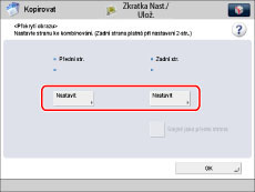 Chcete-li zadat stejná nastavení jako <Přední strana> pro <Zadní strana>, stiskněte [Stejně jako přední strana].