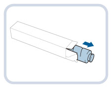 Never touch the tip of the toner cartridge or subject it to shock by hitting it. Doing so may cause the toner cartridge to leak.
