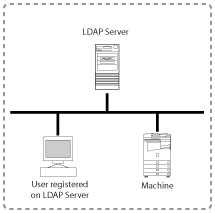 Active Directory Authentication is a user authentication method that logs in to the machine and authenticates the domain on the network by connecting with the domain controller of the Active Directory. In addition to the user that belongs to the domain with the machine, you can authenticate up to 200 users that belong to the domain that is directly related to the domain with the machine. The user selects the domain name when logging in.