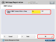 Set [Reject SNMP Packets While in Sleep Mode] → press [OK].
