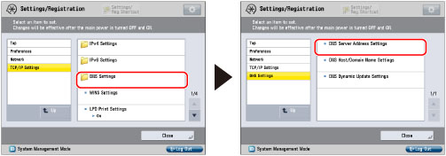Press [DNS Settings] for [TCP/IP Settings] → [DNS Server Address Settings].