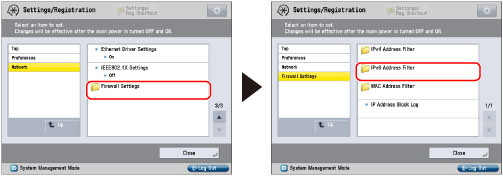 Press [Firewall Settings] for [Network] → [IPv6 Address Filter].