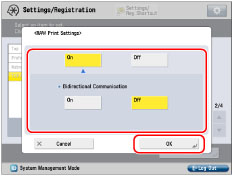 Press [On] to use the Remote UI, IPP printing, WSD printing, WSD scanning, and Department ID Management PIN confirmation.