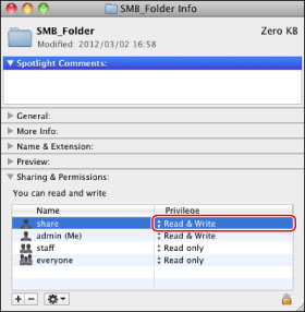 With the shared folder selected, click [Get Info] from the [File] menu.