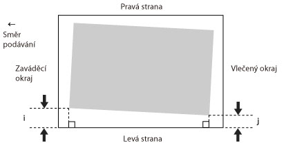 Tiskne-li se obraz našikmo, můžete obraz s nežádoucím posunutím opravit úpravou okrajů „i“, což je vzdálenost od levého okraje papíru k tiskové oblasti, a „j“.