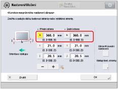 S pomocí dvou následujících numerických hodnot a „h = 360,0“ zařízení provede nastavení, aby tisková oblast a papír byly vůči sobě rovnoběžné.