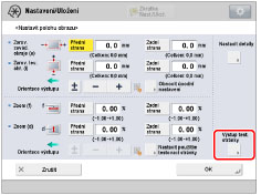 V závislosti na typu papíru může teplo generované sestavou fixační jednotky způsobit roztažení nebo naopak zmenšení papíru. V takovém případě lze obrazy příslušně zmenšit nebo zvětšit. Tato funkce dovoluje nastavit poměr zoomu obrazu pro každý list papíru nebo zvětšit zmenšený obraz tak, aby odpovídal poměru zoomu obrazu na druhé straně papíru. Poměr zoomu obrazu můžete nastavit zadáním poměru zvětšení/zmenšení nebo zadáním hodnoty testovací stránky, kterou jste získali ručním měřením.