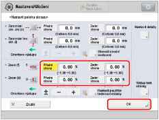 Nastavte poměr zvětšení/zmenšení (%) pro <Zoom (f)> a <Zoom (d)> na obrazovce <Nastavit polohu obrazu> → stiskněte [OK].