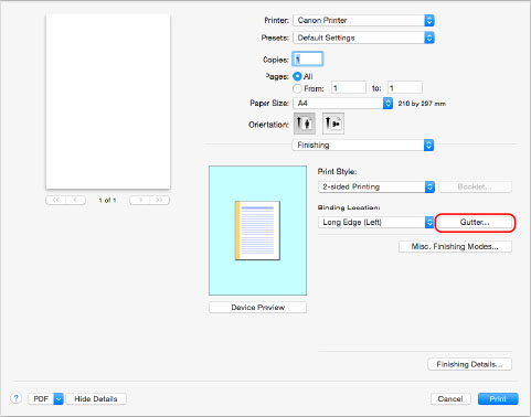The default setting for [Print Style] is [2-sided printing]. You can save the 1-sided printing setting as a preset. For details, see "Using [Presets] for Printing."