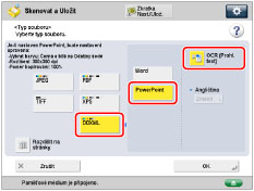 Vyberete-li jako typ souboru [OCR (Prohl. text)], dokumenty lze skenovat pouze v poměru zoomu [1:1 (100 %)] nebo [Auto].