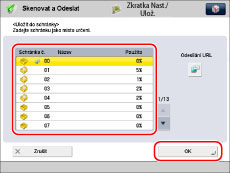 → [Skenovat a Odeslat] → [Nové místo určení].