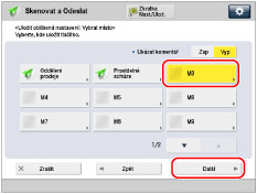 → [Skenovat a Odeslat] → zadejte místo určení a nastavení odesílání, která chcete uložit.
