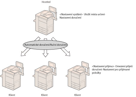 Je-li volba [Omezit příjem info o zařízení] pro <Nastavení příjmu> nastavena na Vyp, stroj může přijímat informace o zařízení doručené z různých modelů stroje. (Viz část "Nastavení přijímacího stroje.") Může se však stát, že se některé informace nedoručí správně.