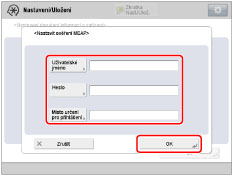 Stiskněte [Nastavit ověření MEAP] v <Nastavení vysílání> → zadejte následující nastavení → stiskněte [OK].