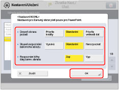 Úroveň rozpoznání a velikost dat se pohybuje mezi hodnotami nastavení [Vysoká] a [Nerozpoznat].