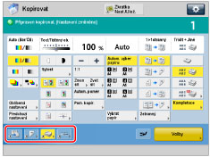 (Viz část "Přepínání obrazovky základních kopírovacích funkcí.")Z kategorie [Volby] můžete uložit až šest požadovaných klávesových zkratek.