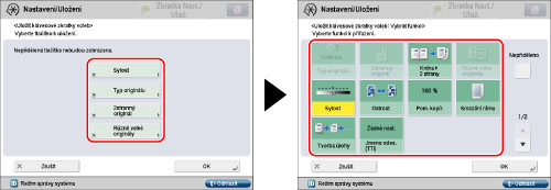 Vyberte tlačítko přímého přístupu (klávesovou zkratku) → vyberte nastavení, které do něho chcete uložit.