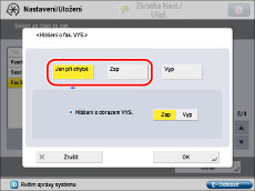 Je-li položka [Hlášení o VYS.] v [Nastavení funkcí] (Nastavení/Uložení) nastavena na Jen při chybě nebo Zap, hlášení o odesílání se vytiskne s hlášením o faxovém vysílání.