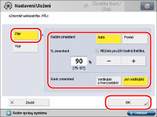 Obraz se zmenší automaticky ve vhodném poměru zmenšení. Tento poměr se může pohybovat v rozsahu od hodnoty nastavené pro <% zmenšení> až po 100 % velikosti přijatého dokumentu.