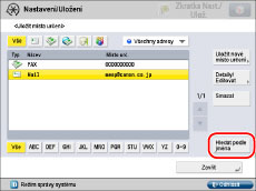Jestliže v rozevíracím seznamu adresářů vyberete [Všechny adresy], zobrazí se také místa určení uložená pod tlačítky volby na jeden dotek. Místa určení uložená pod tlačítky volby na jeden dotek však smazat nemůžete. Instrukce týkající se smazání tlačítek na jeden dotek viz v části