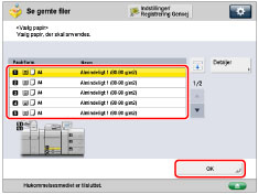 Hvis du trykker på [Detaljer], får du vist detaljerne om det valgte papir.