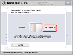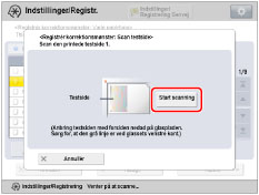 Vær omhyggelig med at placere testsiderne korrekt. Nøjagtige rekalibreringer af maskinens farveindstillinger kan kun gennemføres, hvis testsiderne bliver scannet korrekt.
