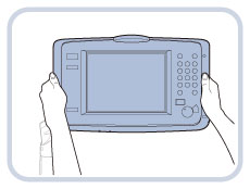 Tag fat i betjeningspanelet med begge hænder, som vist herunder.