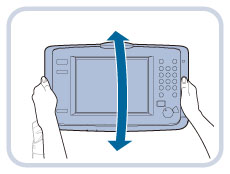 Du kan justere touchpanelets vinkel og placering . Justér betjeningspanelets placering og vinkel, hvis du ikke kan se touchpanelet tydeligt.